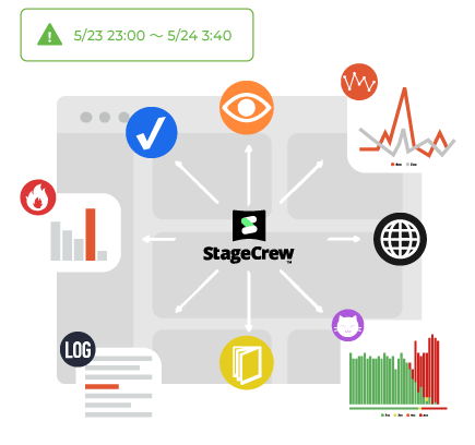 インシデントのパターンに応じた対応フローをStageCrew上で作成。状況に応じた適切なツールが可視化される。